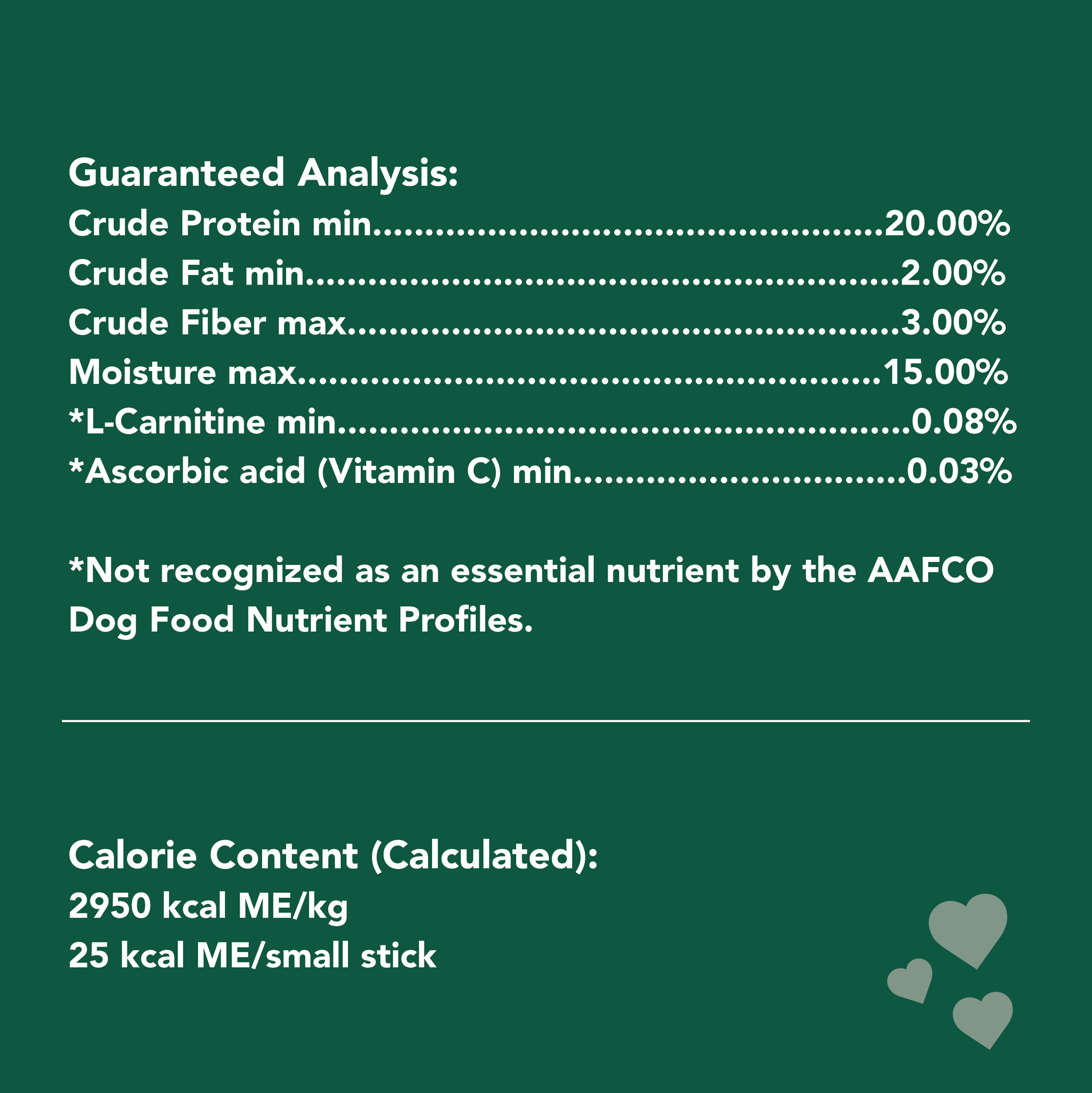 Keeping an eye on the calorie intake of your canine friend? Get Naked® Weight Management dental chew sticks are satisfying, guilt-free treats that also encourage good oral hygiene. Plaque and tartar build-up are removed as your dog enjoys the mouth-watering chicken flavor. The treat sticks are grain-free and formulated with L-Carnitine to boost and support healthy metabolism.