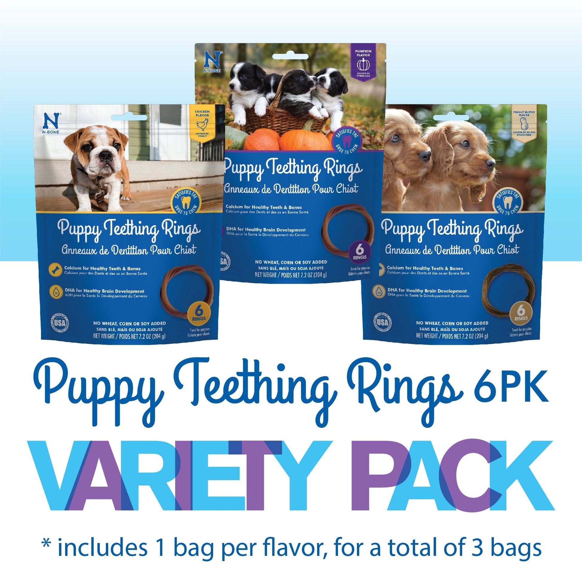 N-Bone Puppy Teething Rings 6 Count Bag Variety Pack, Chicken & Pumpkin & Peanut Butter Flavor, Total 3 Bags, 21.6-oz, 18 Rings