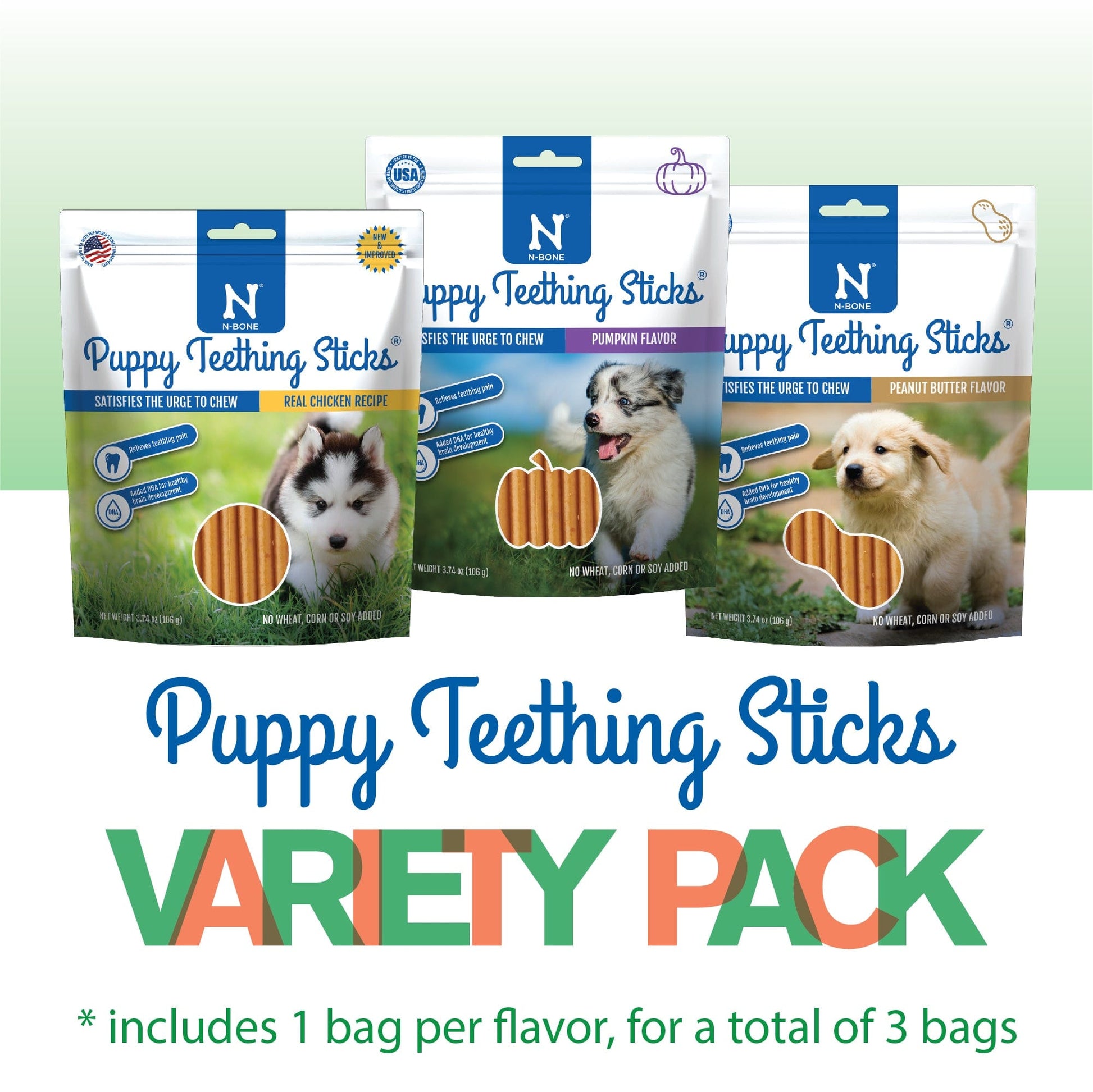 N-Bone Puppy Teething Sticks Variety Pack, Chicken & Pumpkin & Peanut Butter Flavor, Total 3 Bags, 11.22-oz
